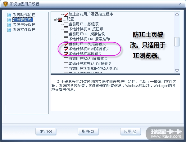 :近期看到许多人的IE主页被改,在系统加固中更新了防IE主页篡改的功能,大家注意勾选