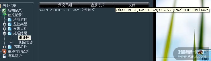 回3楼的,扫描记录的所有病毒里米有,我是文件监控出的病毒,现在是监控记录里的处理结果有2个,一个是删除成功,一个就是未处理...让我提心吊胆的...
