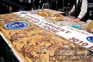 3、世界上最大的软糖 世界上最大的软糖由Northwest软糖工厂于2004年11月5日在加拿大的多伦多制作而成,这块巨大的软糖重1.36吨,不知道需要多少个人才能吃完。