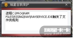 为何我的电脑一开机就出现一个瑞星自我保护对话框,说进程RAVSERVICE.EXE触发了文件类规则是怎么回事,对电脑有影响吗?