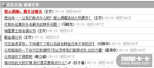 瑞星公司员工在内部论坛上自发倡议捐款鲜血组织救援队