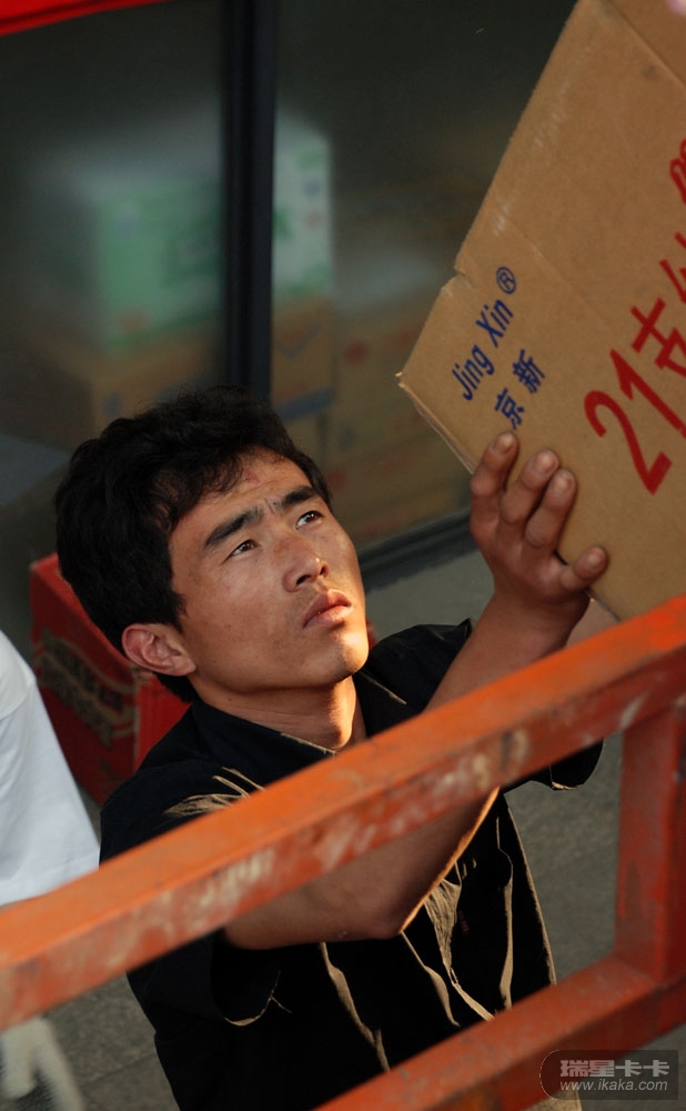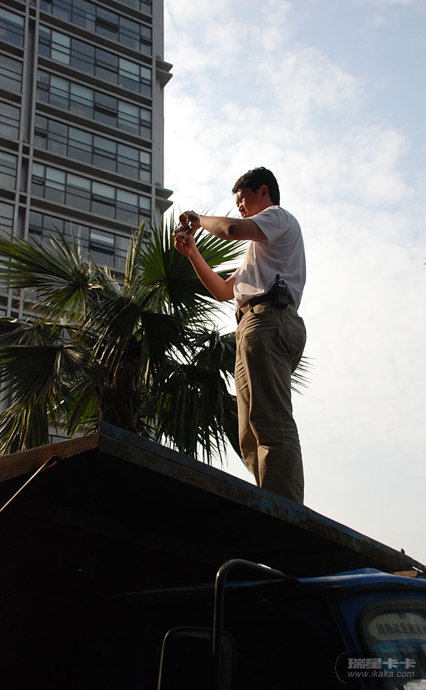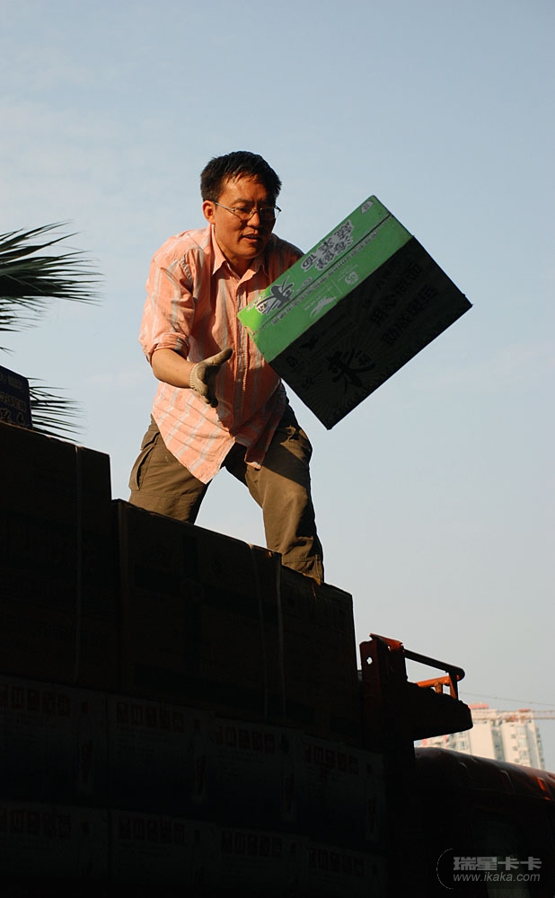 由于经过了前几天的工作,我们积累了一些经验。在晚上装车时,我们主要负责指挥的工作。可是当开工后,我又看到隆宇还在拼命干活。这就是男人!中国男人!