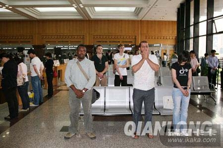 14时28分,北京市公安局出入境管理签证大厅内,所有前来办证的中外人员及民警全部起立,为在地震中丧生的人们默哀三分钟。不少外国友人在默哀时为中国人祈祷,还有外国友人流下了热泪。