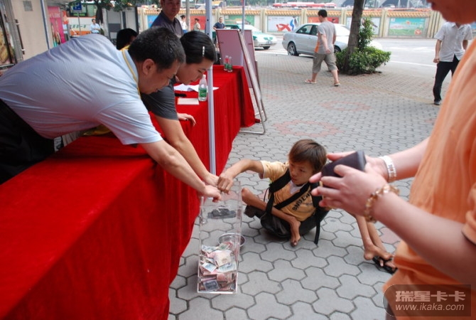 2."我要捐款!" ,他从碗中捐出了几个硬币!