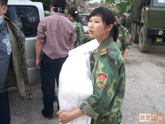 最后是志愿者再三坚持让她们留下,她们才接受了.其实她们很缺这些东西(顺便再说一下,灾区很需要各类卫生用品,很多女兵和受灾女孩子都没有办法保证最基本的生理卫生需求)