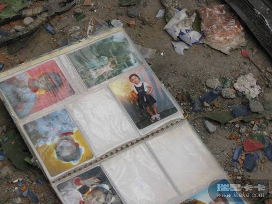 墙体和天花板倒下时,会层层叠加,如果下面有人,身上会盖上好几块大面积的水泥硬块。钢筋混凝土绞合在一起,铁锹用不上,铲不动,得先用镐砸碎了才能撬动。我们在这片废墟上挖了一会儿后意识到:不能所有人同时挖,得分组上,集中几个人挖同一个地方。太难挖了,到后来基本上就是用手。这是在废墟上找到的一本相册,小姑娘看上去很可爱,这一家人现在……