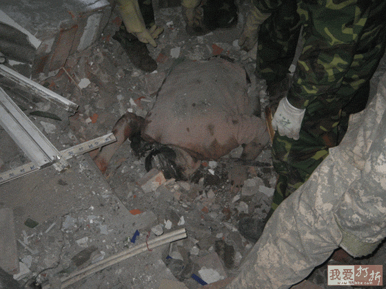 空气中飘着浓烈的异味,没经历过的人无法想象的那种,戴上口罩也无法遮掩。离需要挖掘的废墟越近,气味越重,我们的心也一点一点往下沉。出发时太匆忙,忘了带相机电池,很多让我们难忘的场景,没能拍下来。下面几张图,是***的队伍前一天在都江堰挖过的地方,一个商场,埋了很多人: