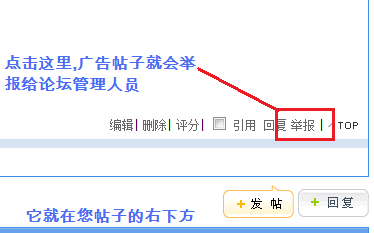 举报 这个功能可以帮助您把广告帖子上报给管理员,
