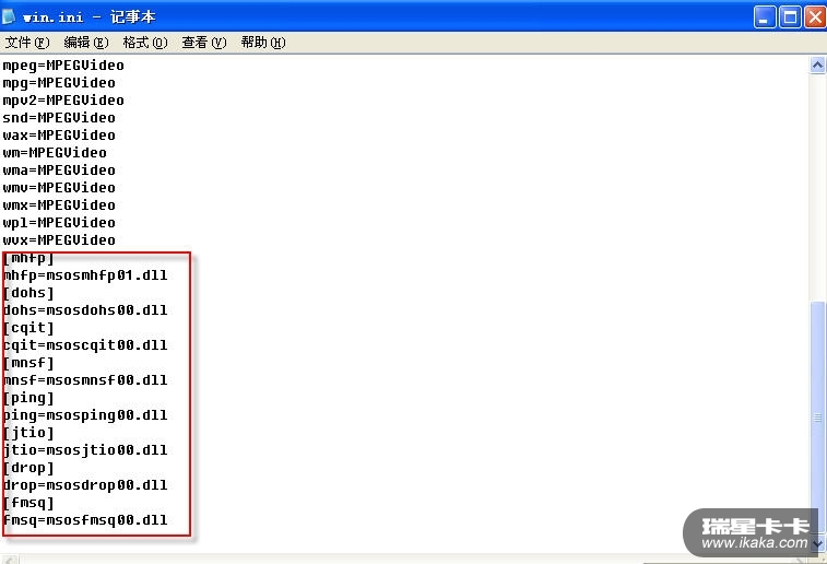 把c:\windows\win.ini 文件中如图类似的内容删除