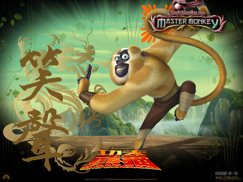 友好,幽默,热情,猴子大师是五位功夫高手中最平易近人的一位。他用随和的态度掩饰着他那非凡的军事才能。猴子很喜欢开玩笑,每次看熊猫学功夫的景象都特别开心…