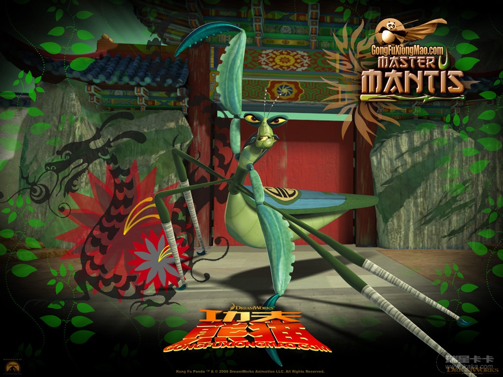 MANTIS可能是五位功夫大师中体型最小的一位了,但他却从不承认这个:强壮,敏捷,灵巧。他总是非常同情PO的苦处,每次都很快来点小幽默帮PO脱离窘境。什么都吓不到他勇敢的小心脏…母螳螂除外。(查查昆虫百科就知道为什么了呵呵。)