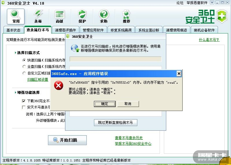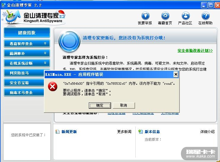 你的瑞星没有装好 上面全是显示unkown 估计中病毒了