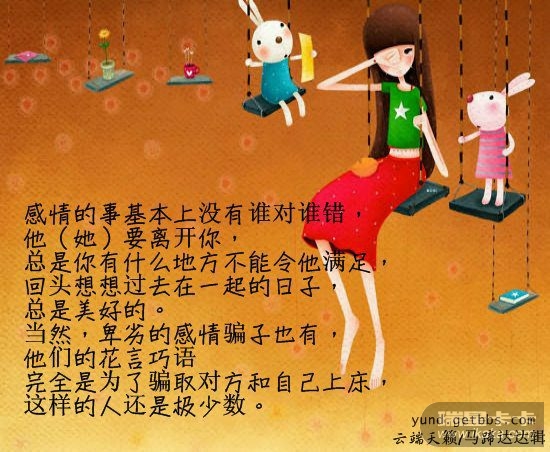 昨天,某人看了这个,问我一句话,到今天我还郁闷.. 他说:我们有恋爱过吗? 他认为,我是因为寂寞而恋而爱.!