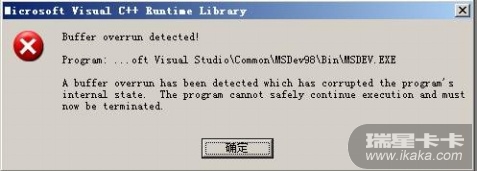 瑞星防火墙引起Visual C++ 6出现奇怪的问题:Buffer overrun detected!