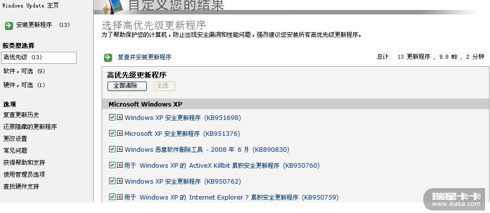 问题描述:卡卡扫描出的漏洞数与Windows update的不符