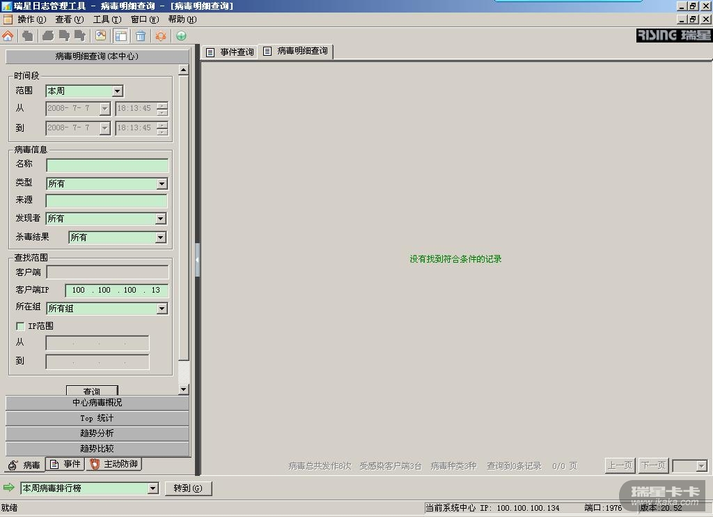 其它都正常。唯独日志查不了。在sql数据库表里也能看到那台机器的病毒信息。