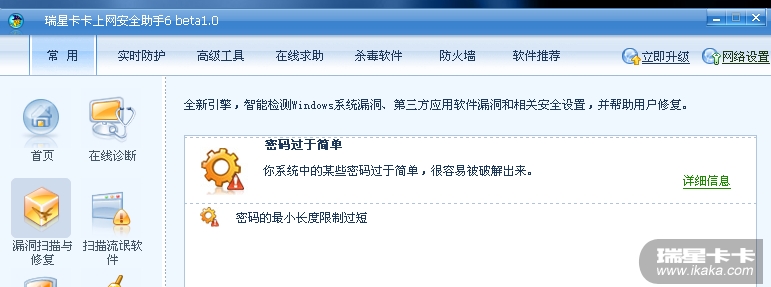 首页 » 个人产品讨论区 » 瑞星其他产品 » 瑞星安全助手 » 卡卡上网安全助手 » 才发现的 漏洞扫描界面问题
