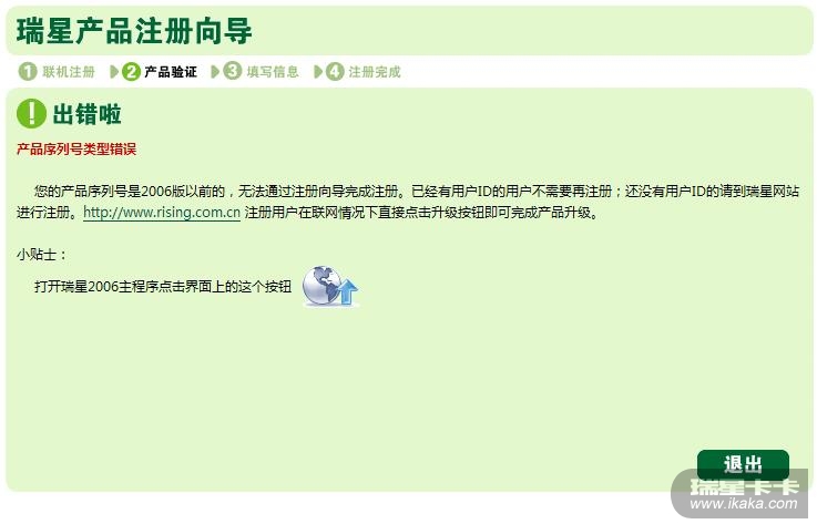 我现在每次升级防火墙,都出一个让我注册的窗口,我买的是正版的瑞星(2005)的.