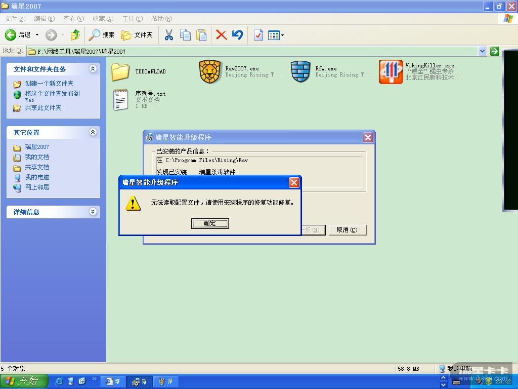 2.随即发生瑞星杀毒软件被迫关闭,无法使用修复项;卸载后,更是无法更新,状况如下图。