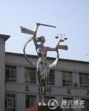 从西北政法的正门进去,有一巨大雕像映入眼帘,那就是著名的“二奶要报仇”。