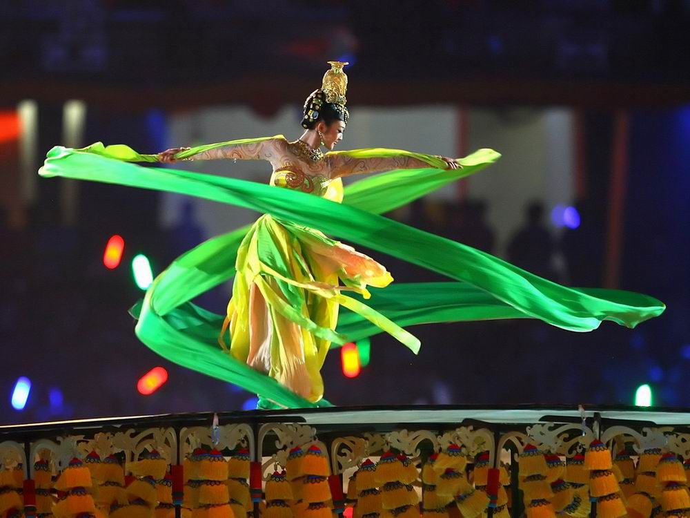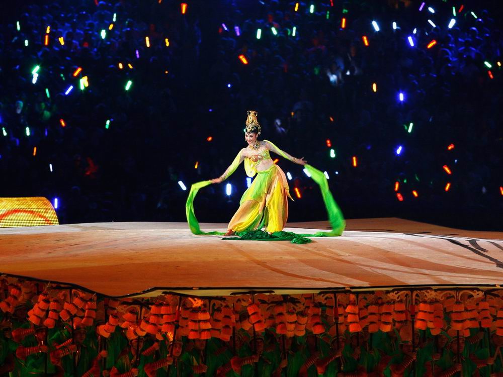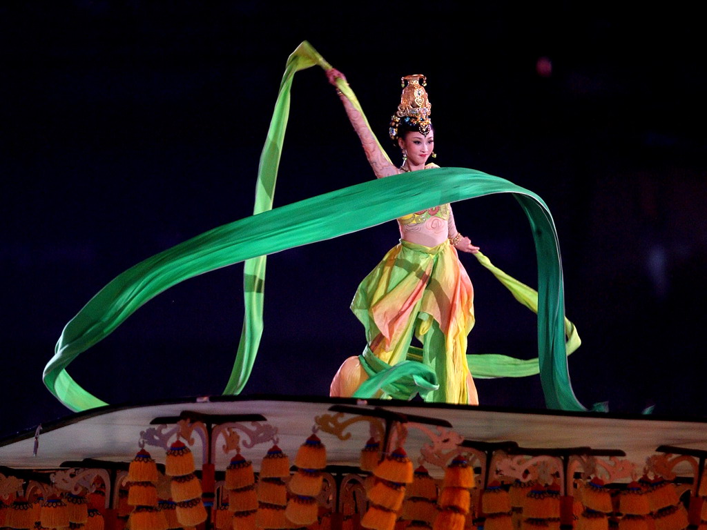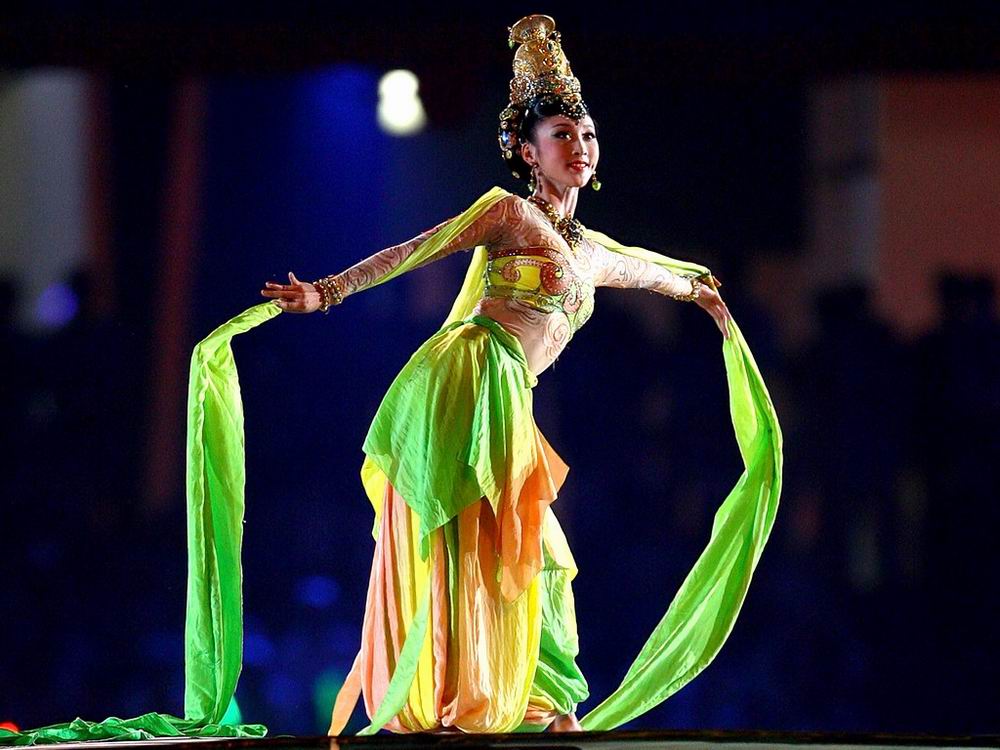 600多年前,明朝的郑和7次率领27000人的船队远航,从泉州出发,到达西亚、东非地区,开创了有名的“海上丝绸之路”。灵动的古典美女用舞姿演绎美丽传奇。。图为安静也动人。