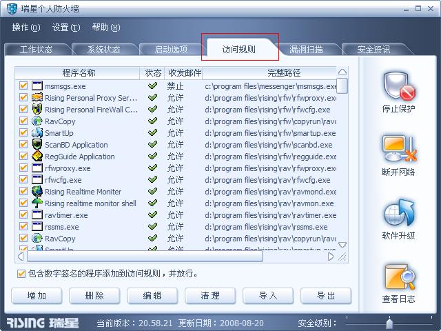 现在我需要关闭瑞星防火墙才能正常连接到网络,就是防火墙阻挡了连接