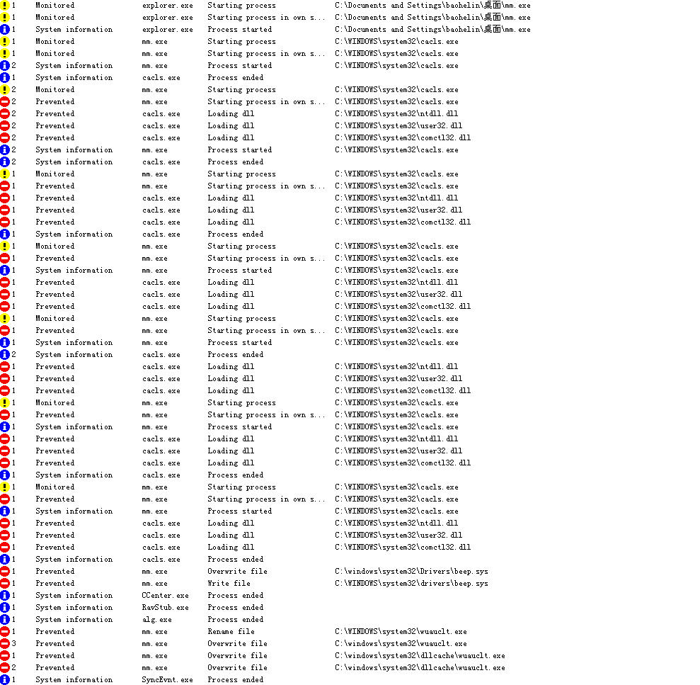 就这样,在Tiny程序分组的基础上,凭借两条简单的防护规则,就将这个绕过windows文件保护替换系统程序wuauclt.exe、beep.sys且穿还原软件的木马搞死了。