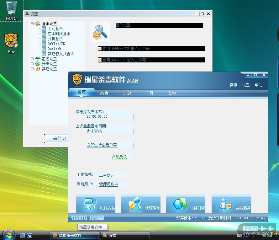 Windows Vista Business x64 SP1瑞星软件版本:21.00具体看图吧……惨不忍睹!