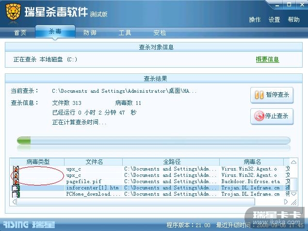 杀出病毒是,有个病毒类型,只有图标旁边没病毒类型文字介绍,旁边空着很不好看,建议还是加上文字比较好或者象08一样图标在文件名的旁边也不错
