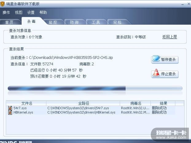 是个补丁包,体积比较大,包含的文件n多,要杀毒当然要后台解压之后才能杀了,你自己动手解压杀毒都要老半天,瑞星当然也不例外。以后这类比较大的文件可以设置排除,只要确信无毒
