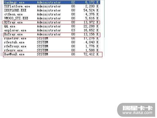 进程里出现了一个RsTray,而卡卡6的进程也有一个RSTray