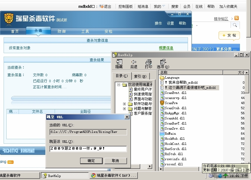 瑞星软件版本:21.00.21 2008-9-9 13:25