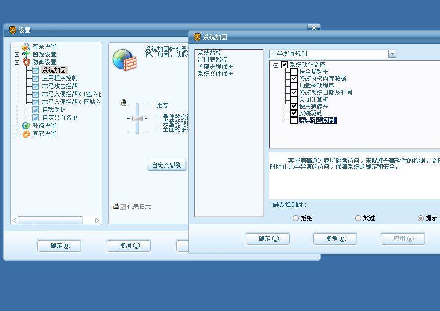 即没有打对钩,也无法将对钩去掉,也不能设置触发时的动作,如 拒绝,放过,提示 等操作均无法处理.