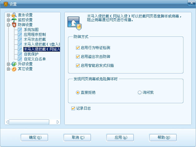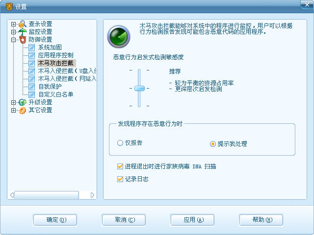 在“木马攻击拦截”这里看到了很新奇的概念,通过病毒DNA判断恶意行为的高级启发式检测。估计这样的检测会成为一种趋势吧。