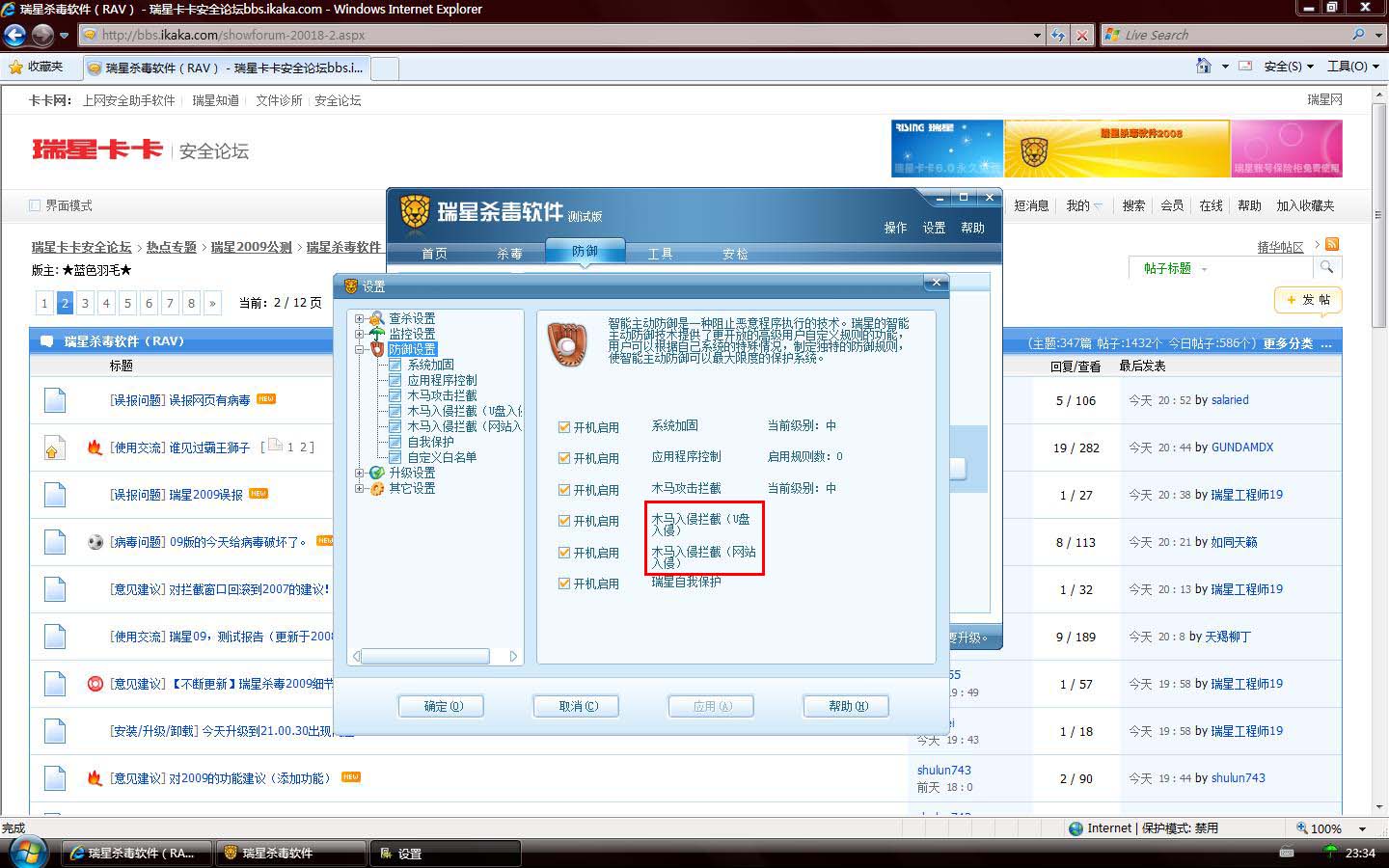 ]瑞星“设置”里的“防御设置”里的“开机启用”后面的木马入侵拦截(U盘入侵)和(网站入侵)文字应该合成一行吧。