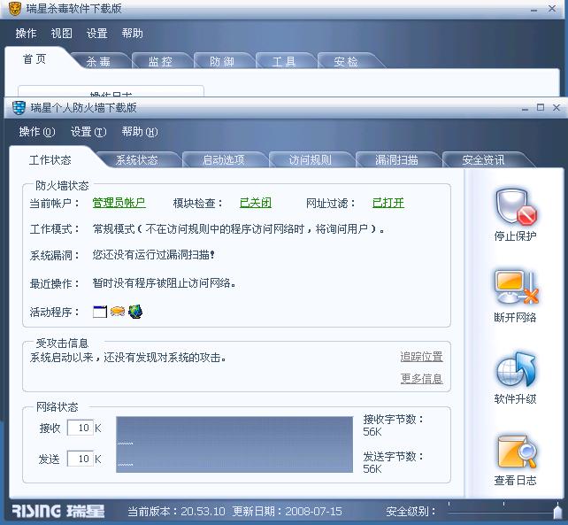 纯粹为了测试,彻底删除瑞星个人防火墙下载版。