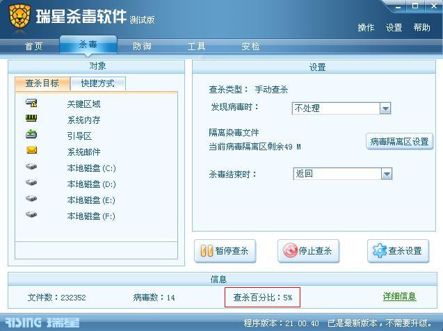 全盘杀毒的时候 查杀百分比 一直停留在 5%