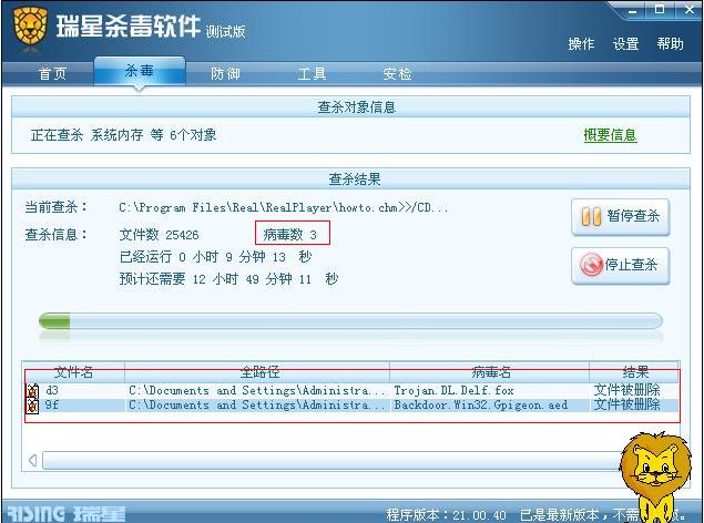09版好像瑞星监控和瑞星杀毒是分开的,只要杀毒找到病毒,监控就抢先一步说删除文件成功...但是奇怪的是,瑞星杀毒那里也是删除成功的丫?