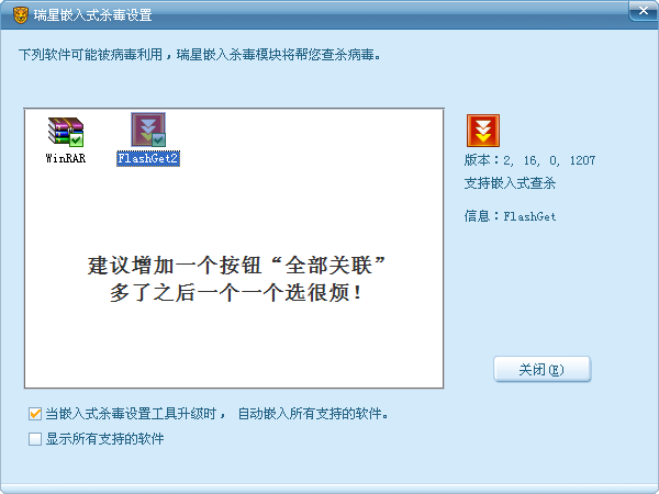 1.第一个是嵌入式杀毒的设置,跟以前保险柜一样,不能一键全选。