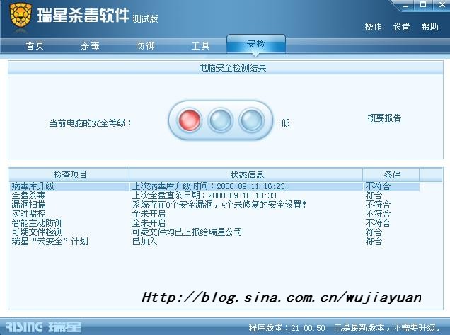 瑞星软件版本:瑞星杀毒软件2009测试版