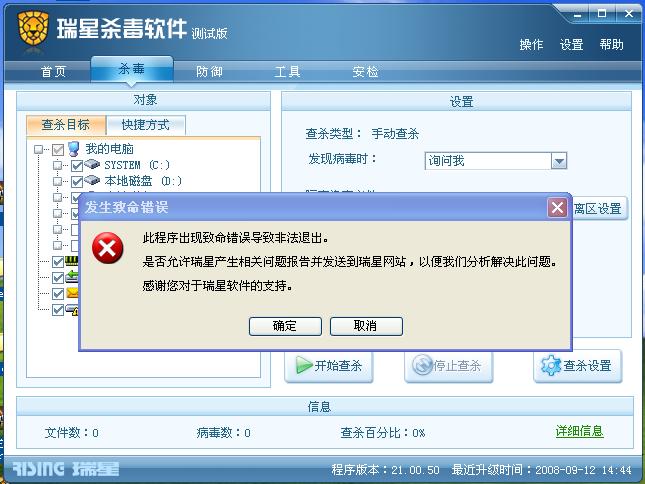 出现问题前的操作步骤:用右键扫描文件出现错误的对话框