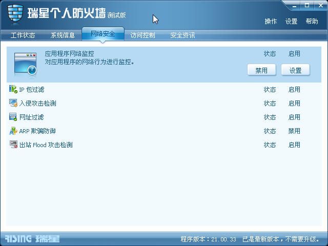 网络安全项下的 ARP欺骗防御 直接点击禁用并输入验证码。 转到设置页面,发现ARP相关防御选项和启用状态一致。