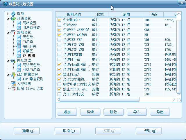 涉及到网络协议,看规则名称能知个大概,一般默认即可。