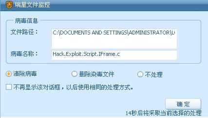 可疑网站瑞星文件监控报毒了,防火墙也报了,但是防御不报,工程师上去测试下,呵呵