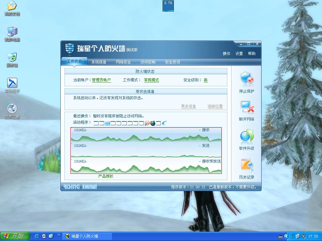 1.防火墙在主界面中添加流量图---很直观!!!但我们却不知是哪一个进程在发送或结束!!!