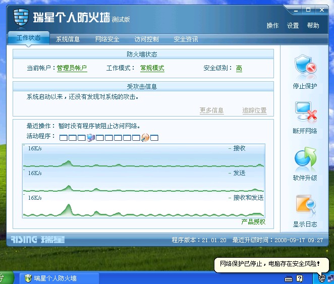 经过测试邮件托盘程序图标,选择停止保护也是需要输入验证码的,感谢支持瑞星~:default7: