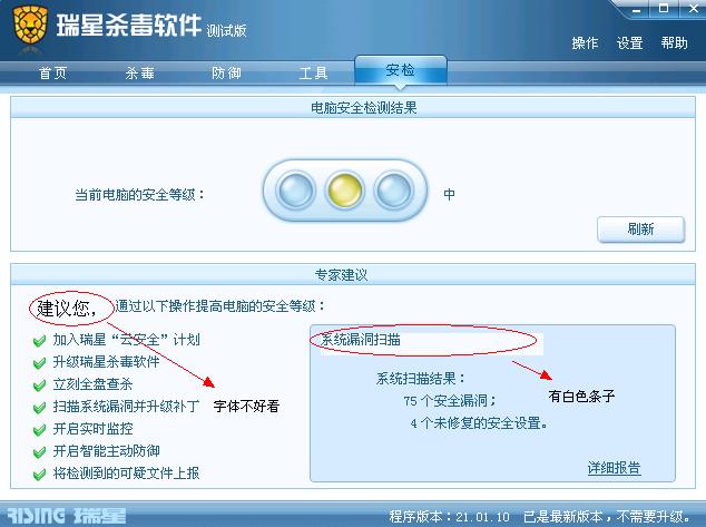 出现问题:点安检,出现不好看字体,还有系统漏洞扫描有白底