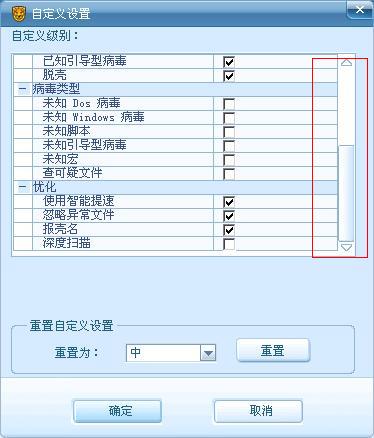 问题现象:设置中手动查杀-自定义级别的窗口打开的时候右边的滚动条总是在最