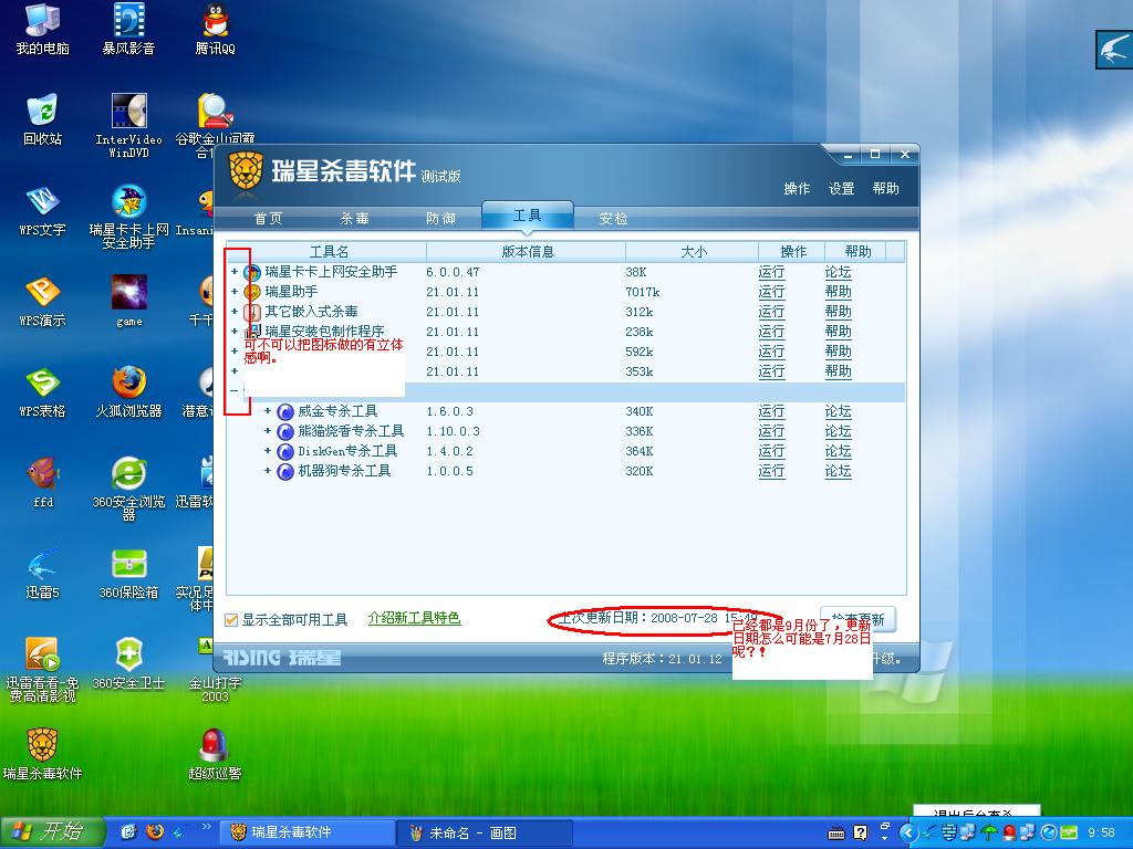 瑞星2009测试版问题反馈
