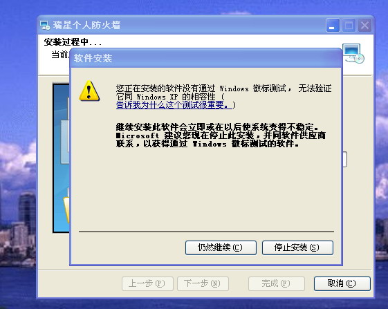 我安装了瑞星2009后,运行迅雷CPU占用40%,(迅雷用的是瑞星的扫描模块)。今早开机进到桌面,运行到防火墙的时候就重启。后来用最后一次正确配置开起了机。防火墙不能开启保护,也退不出。安装时出现